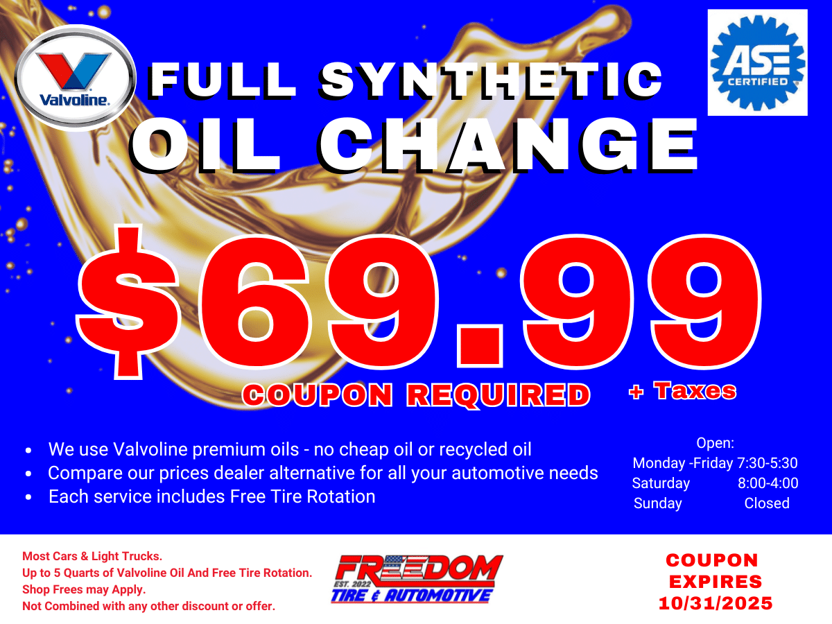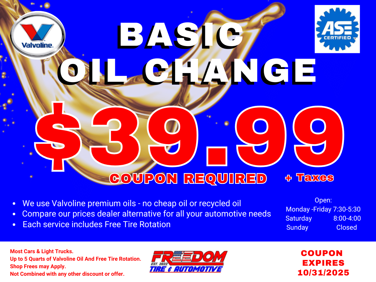 - From tires and alignments to oil changes and brake service, we have you covered.
